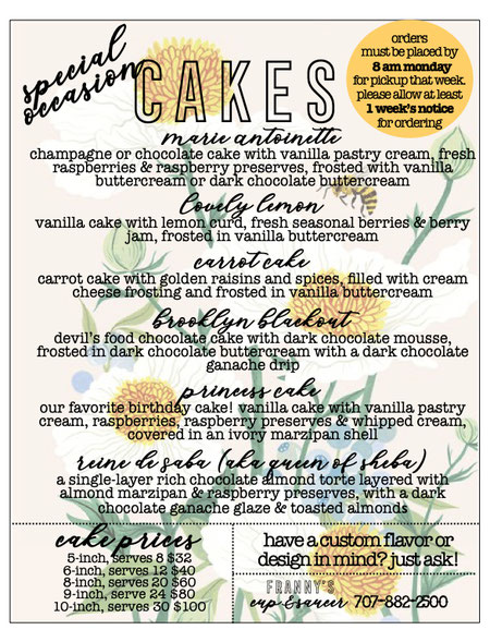 PLEASE NOTE:Weekly cutoff for cake orders is Monday at 8am.